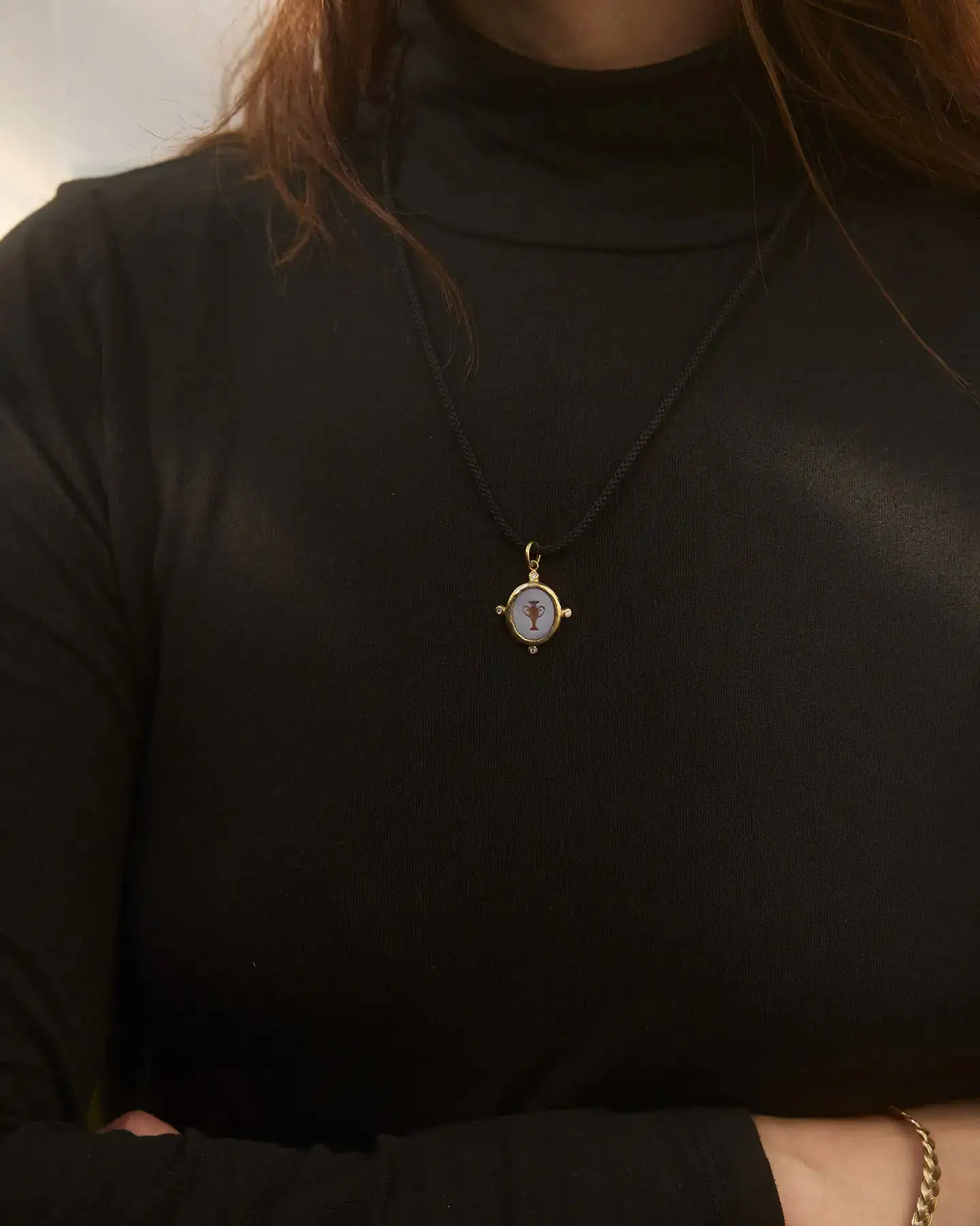 Crafted with a woven Japanese silk from Mokuba. This Rope cord features gold plated brass end caps. This versatile necklace can be easily tied to your desired length. Wear it around your neck fashioned as a choker or long for a more minimal look.